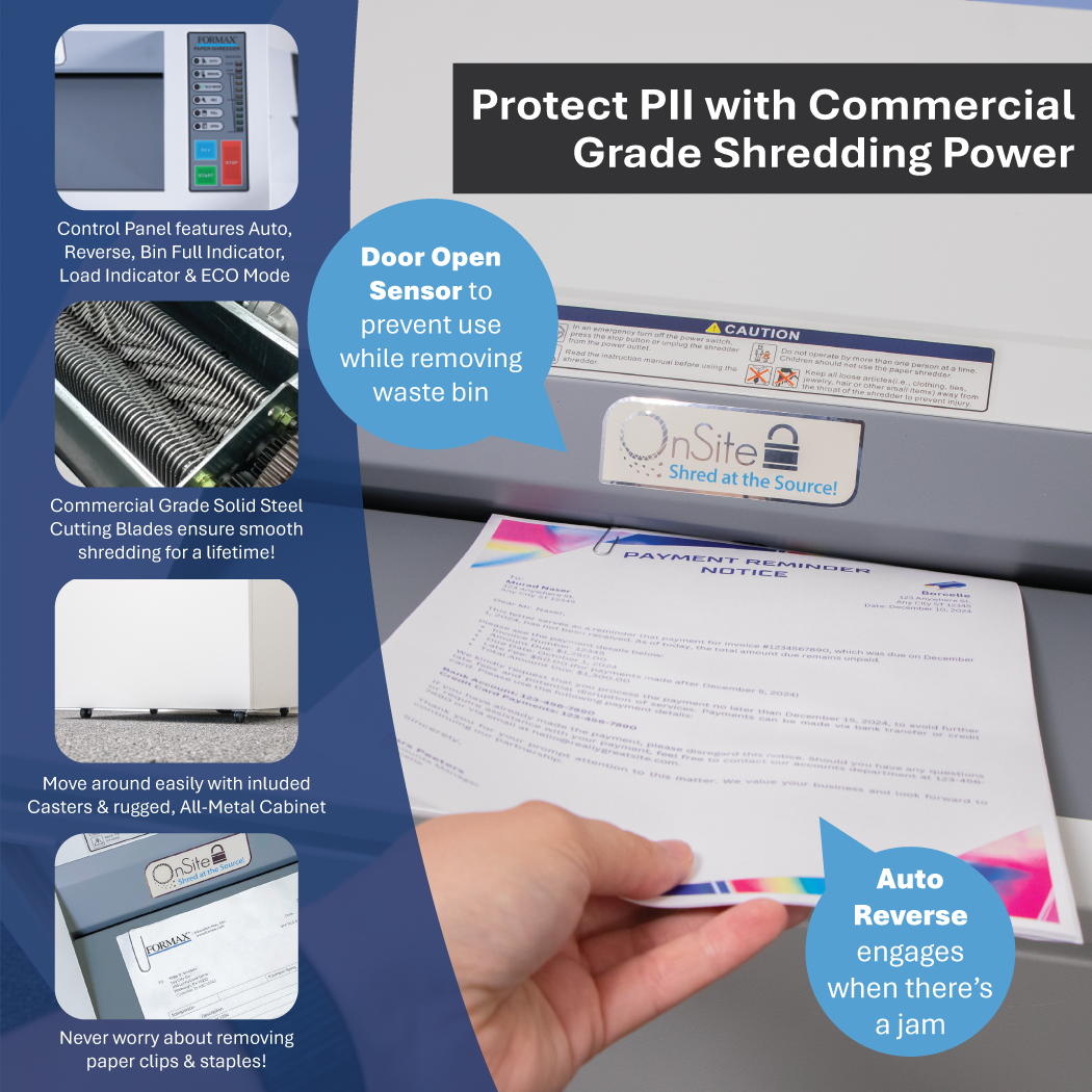The Formax OnSite FD 8602CC Office Shredder features an extra wide 16″ feed opening combined with commercial-grade components in a sleek, practical design. An easy-to-use LED control panel puts the power right at your fingertips.
