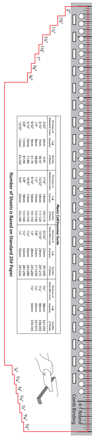 In addition, this 14″ productivity tool contains charts relating to component diameter, booklet thickness and sheet numbers per document for all three binding component types.